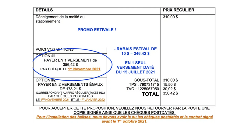 PAYÉ EN UN SEUL VERSEMENT DATÉ DU 15 JUILLET 2023 ET OBTENEZ UN RABAIS DE 10 $ SUR LE TOTAL INCLUANT LES TAXES